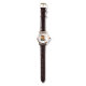 Has heft and feel of expensive stainless steel quartz watches. Good band with safety catch. I removed links, which is easy because engraved arrows show direction to push the linking pins. As always by this seller, the image (a railroad logo) is a perfect reproduction of my emailed image, and is precisely spaced and aligned.