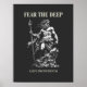 Commanding the seas from atop ancient rocks, Poseidon rises with his trident to remind mortals of the power beneath the surface. Featuring bold lettering “FEAR THE DEEP” and the Latin warning “CAVE PROFUNDUM”, this striking black-and-white artwork is perfect for mythology lovers, dark art fans, and deep-thought rebels alike. A visual fusion of classic antiquity and modern gothic edge.