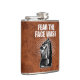 Well made flask, a little better than I had expected. Flask came in clear plastic box which gave it a nice presentation when I took it out of the zazzle packaging. Image is not printed on flask but on sticker. Don't know how this will hold up I haven't used it yet. This would make a Great gift! I plan to purchase more for friends! Cheers. I thought a little brighter than computer. Very crisp, writing wasn't