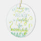 Lightweight, smooth, pure white ornament with nice sheen. Perfect size to be seen from across the room ... and to attract closer inspection! Price was great for ordering enough for the whole family! Clear, bold black design just as requested. Matches the order exactly. Just so nice!