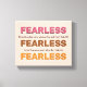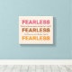 This is a calming color scheme with a strong, inspirational message. FEARLESS written three times - in vibrant pink, burnt orange and rich yellow - against a serene, light peach background. Inspirational verses taken from Psalms 27 and 56 are written in between in black typography. This canvas design would make an excellent gift for Christmas, for Birthdays, Mother's Day, Father's Day, for Newlyweds, Housewarming or as a motivational gift. This and other complementary items can be found in the FEARLESS Collection by Berean Designs.