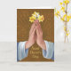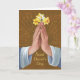 Celebrate the Feast of St. David with this heartfelt card, honoring his legacy of faith, humility and devotion. Praying hands hold a small bouquet, symbolizing his gentle strength, with “St. David’s Day” inscribed beneath. Light radiates from the center, illuminating a richly textured brown background. A beautiful way to share blessings and joy on this special day dedicated to Wales’ beloved patron saint.