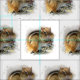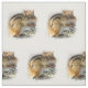 This sweet animal fabric design features a repeating pattern of a cute little brown and gold chipmunk with black and white stripes stuffing his cheeks as fast as he can on a snowy winter day