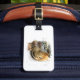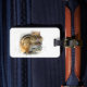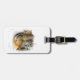Make your luggage stand out on an airport carousel with unique tag designs! This adorable luggage tag features a cute little chipmunk stuffing his cheeks as fast as he can on a snowy day. His fur coloration is gold, brown and white with black and white stripes down his back. The back has another little chipper. Customize the reverse side with your personal information.