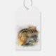 This pack of gift tags features a cute little brown and gold chipmunk with black and white stripes stuffing his cheeks as fast as he can on a snowy winter day. The image is on both front and back.