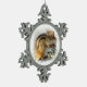 This pewter holiday ornament features a cute little brown and gold chipmunk with black and white stripes stuffing his cheeks as fast as he can on a snowy winter day. Won't he look adorable hanging from your Christmas tree?