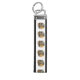 This animal wrist keychain features adorable brown and gold chipmunks with black and white stripes stuffing their chubby cheeks with sunflower seeds.
