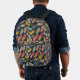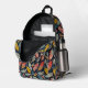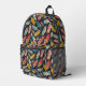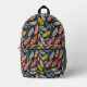 Carry your stuff with style with this fun brightly colored feather patterned backpack.