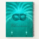 Feather masquerade mask art deco teal white notebook