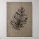 Feather no. 1 pen and ink hand drawn feather illustration with taupe colored linen image as the background.