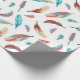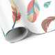 Enjoy the boho chic vibe and style of this beautiful, feather pattern. Colorful and in many shapes and sizes. Most colors are earth tones, like turquoise, red dirt, brown, tan, and bluish-greens all on a white background.