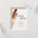 A simple save the date card with feather illustration image, compatible for both outdoor (garden) and indoor modern wedding or engagement party.