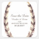Chic and modern Feathered Border Save the Date Stickers with a stylish watercolor look brown and beige colored feather border. These elegant and unique save the date stickers are easy to customize with your wedding details. For more customization options, click on the Customize It button.
