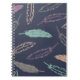 A chic journal featuring a colorful feather pattern.