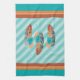 Feathers in Teal Stripes and Desert Color Kitchen Towel
