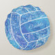 This pretty volleyball themed round pillow features the image of a stylized blue volleyball that has turquoise, purple, pink and darker blue accents throughout - a delicate doodle pattern of paislies, flowers and feathers in white covers all but one of the volleyball's panels - personalize with her name on the front and back - by katz_d_zynes