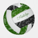 This cute volleyball themed ornament features the realistic image of a volleyball that has green, black and white panels and a delicate doodle pattern of paislies, flowers and feathers in white overlying the green and black panels - personalize with her name on the front, year on the back - by katz_d_zynes