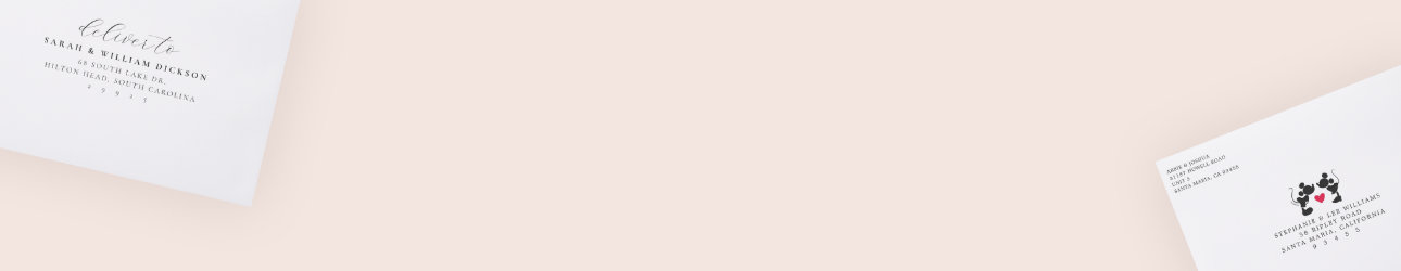 We offer over 60 different unique designs for addressed envelopes with a variety of font options, designs, and colors. Don’t forget to add your invitations and cards to your cart!
