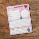A sweet book report notepad for elementary school students . They can learn to fill it up with the book title , the author and illustrator's names , the number of pages . They can draw a portrait of the main character . They should also write a summary of the story and give a rating , including the reason why .