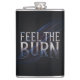 A powerful and visually striking graphic design featuring the phrase "Feel The Burn" in bold, elegant colors. The text is rendered in a sleek, modern font, with contrasting shades of deep blues, purples, and silvers. The overall composition is dynamic and eye-catching, with the text positioned prominently against a dark background. The design evokes a sense of intensity and excitement, reminiscent of the fiery energy of a burning flame.