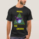 My 11 yo wore adult XL (5’7” 165#). The 8yo is small framed. She wore adult small and tied it in the back. Grandma wore adult large with long sleeve shirt underneath. Tall girl adult medium. Dark haired male adult large. Good quality dark Heather gray, Gildan brand shirt. -it was next up from basic choice and cost about $20 per shirt. Not too thick or thin. Washed and dried well, no major shrinkage. Not see-through. Can wear a bra under it fine. Screen print is just as shown and well done, front and back.