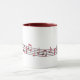 Artsy red string of music notes grace this red-handled mug with red rim trim! Add your own message if desired!
