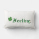 This fun Irish pillow is accented with a 4 leaf clover and "Feeling" written in green on the front. The back is further accented with "Lucky" written in green and a cute kiss, making it a sweet gift for St. Patrick's Day. If purchasing 2 pillows they can be arranged on a bed side by side saying "Feeling Lucky".