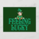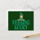 This St. Patrick's Day design features a cute little Irish leprechaun sitting on top of the caption "Feeling Lucky" in large green text.