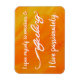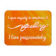 The refrigerator magnet features the orange sacral chakra color "feeling". The statements above and below note, "I open myself to emotions & I live passionately."