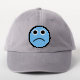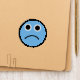 Wear your emotions wherever you go with this round patch featuring an emoji style illustration of a blue sad or frowning face in a fun modern style.