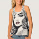 Women's All-Over Print Racerback Tank Top, White Piping, S