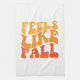 This bold and vibrant fall-themed artwork features the phrase "Feels Like Fall" prominently displayed in a retro-inspired, chunky font. The text is arranged in a dynamic, playful layout that draws the eye and adds a sense of movement to the design. The warm gradient color palette transitions from golden yellow to deep orange, perfectly capturing the rich hues of autumn leaves. The simplicity of the design, paired with its nostalgic typography and striking colors, makes it a perfect choice for seasonal decor, apparel, or promotional materials celebrating the arrival of fall. This artwork is ideal for evoking the cozy and nostalgic feelings associated with the autumn season.