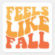 This bold and vibrant fall-themed artwork features the phrase "Feels Like Fall" prominently displayed in a retro-inspired, chunky font. The text is arranged in a dynamic, playful layout that draws the eye and adds a sense of movement to the design. The warm gradient color palette transitions from golden yellow to deep orange, perfectly capturing the rich hues of autumn leaves. The simplicity of the design, paired with its nostalgic typography and striking colors, makes it a perfect choice for seasonal decor, apparel, or promotional materials celebrating the arrival of fall. This artwork is ideal for evoking the cozy and nostalgic feelings associated with the autumn season.