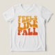 This bold and vibrant fall-themed artwork features the phrase "Feels Like Fall" prominently displayed in a retro-inspired, chunky font. The text is arranged in a dynamic, playful layout that draws the eye and adds a sense of movement to the design. The warm gradient color palette transitions from golden yellow to deep orange, perfectly capturing the rich hues of autumn leaves. The simplicity of the design, paired with its nostalgic typography and striking colors, makes it a perfect choice for seasonal decor, apparel, or promotional materials celebrating the arrival of fall. This artwork is ideal for evoking the cozy and nostalgic feelings associated with the autumn season.