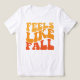 This bold and vibrant fall-themed artwork features the phrase "Feels Like Fall" prominently displayed in a retro-inspired, chunky font. The text is arranged in a dynamic, playful layout that draws the eye and adds a sense of movement to the design. The warm gradient color palette transitions from golden yellow to deep orange, perfectly capturing the rich hues of autumn leaves. The simplicity of the design, paired with its nostalgic typography and striking colors, makes it a perfect choice for seasonal decor, apparel, or promotional materials celebrating the arrival of fall. This artwork is ideal for evoking the cozy and nostalgic feelings associated with the autumn season.