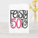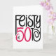 Hand-drawn digital text design: "Feisty at 50ty". Turning 50? Or know a family member or friend who is? Here’s the perfect gift to wish them a fabulous, feisty Happy 50th Birthday. Or an excellent invitation to a celebration and as party presents! Also available as a lovely matching stickers, t-shirt.