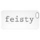 Having or showing exuberance and strong determination, that's feisty. Is that you or someone you know? Show it off with the word "feisty" written in black in a cool font.