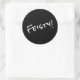 Feisty! written in white, modern trendy font typeface on a classic black & white sticker. This design is available in two sizes (large 3" with 6 to a sheet or small 1.5" with 20 per sheet). You can also choose glossy or matte finish. Although it is also available in many shapes, this design won't look good on all of them (unless you edit it), If you choose an option other than the one shown, make sure to preview it before ordering - just to make sure you like the results.