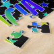 This exciting, fun, birthday-themed jigsaw puzzle design features the message "HAPPY BIRTHDAY, FELICIA" with the characters having a colorful rainbow spectrum inspired gradient pattern, in addition to a vibrant star shapes background pattern. An exciting puzzle like this might be a fun way to send birthday wishes to somebody named Felicia. [~Z0000468]