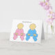 Two twin cartoon babies, one in pink and one in blue, with the word 'Félicitations', which translates as 'Congratulations'.