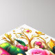 1. Step into a world of enchantment with this exquisite piece of art featuring a vibrant and whimsical portrayal of a colorful cat nestled among a bed of roses. The stylized cat exudes elegance and grace, with its serene eyes gazing out at the viewer, inviting them to get lost in the intricate details of the scene.