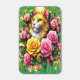 2. Surrounding the feline are lush, blooming roses in a myriad of hues, creating a stunning contrast against the cat's colorful fur. The ornate decorations and intricate patterns further enhance the magical ambiance of the artwork, transporting the viewer to a fantastical garden where time stands still.