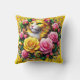 Feline Amidst a Vibrant Floral Bloom Throw Pillow