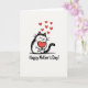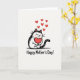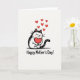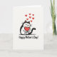This card shows a round, cozy-looking cat with a white coat and dark stripes along its back and tail, sitting calmly as if savoring a quiet moment with someone it adores ❤️. Its eyes are closed and its cheeks have a soft rosy tint, giving it the look of a bashful friend caught in a sweet, private exchange. Held gently between its front paws is a bright red heart, cradled close like a small gift offered with care. Above the cat, several smaller red hearts float upward in a loose trail, suggesting affection rising into the air. The background is a soft ivory tone with lots of open space, keeping the focus on the cat and the hearts. Near the bottom, a short greeting is centered in a dark ink with a subtle shadow, making the words stand out without crowding the artwork 🌼. The cat’s striped tail curves to one side, and the red hearts above it vary slightly in size as they drift upward.