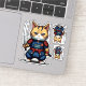 This captivating pixel art image features an anthropomorphic cat dressed as a samurai, complete with traditional blue and red armor. The cat, with orange fur and black stripes, stands ready for battle, wielding a katana sword in its right paw with another sheathed at its side. Its serious and determined expression enhances the warrior theme, blending the cuteness of a cat with the historical and powerful elements of a samurai. This unique and engaging character design is perfect for fans of both cats and Japanese culture.