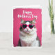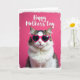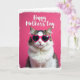 Designed with a cozy, affectionate feel, this card features a fluffy domestic cat centered on a rich pink background, looking straight ahead as if posing for someone it adores ❤️. Its fur mixes bright white with soft brown tabby tones, and the full white ruff spills down its chest like a little scarf. The cat wears fuchsia, heart-shaped glasses with dark reflective lenses, adding a flirty, friendly wink to the scene. Across the top, the words “Happy Mother’s Day” appear in slender white lettering, clearly separated from the cat’s head so the message stays easy to read. Soft, even lighting brings out the texture in the fur and keeps the pink backdrop smooth and consistent. A lightly textured white border frames the image, with faint pink shading bleeding into the edges like a gentle blush 🌼. The heart-shaped glasses sit squarely over the cat’s eyes, their bright frames popping against the pale fur and the saturated pink behind.