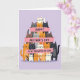 This card features a tall stack of stylized cats arranged like a friendly little pyramid on a soft lavender background. The cats are drawn with rounded shapes and simple lines, wearing coats of white, orange, gray, brown, and black that sit together in a cozy, companionable mix. Their tiny dot eyes and small triangular noses give them a gentle, affectionate look, like they’re quietly sharing a group hug ❤️. Three horizontal pink ribbons run across the pile, and several cats hold them as if they’re helping each other keep everything in place. A short message appears across the ribbons in a darker pink shade, centered so it reads clearly against the lighter bands. Some cats peek over the top edges of the ribbons while others stand below, leaning in close as if posing for a sweet group photo. Small whiskers and rounded ears repeat across the crowd, and the pink ribbons create three neat stripes from left to right 🌼.
