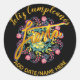 Feliz Cumpleanos FIESTA Folk Flowers Personalized Classic Round Sticker