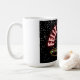 Celebrate Christmas with a Latin flair with this festive holiday mug featuring curved neon "Feliz Navidad" text with neon sombrero and holly on a black background with falling snowdrops.