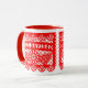 This Christmas mug features a red papel picado Mexican banner with the phrase Feliz Navidad on the front in bright white. The back has the same design as the front.
